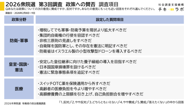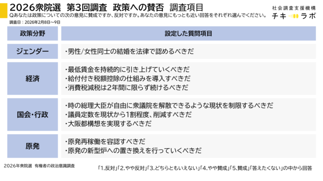 掲載データはチキラボが2026年の衆院選期間中に実施した継続調査の結果です。